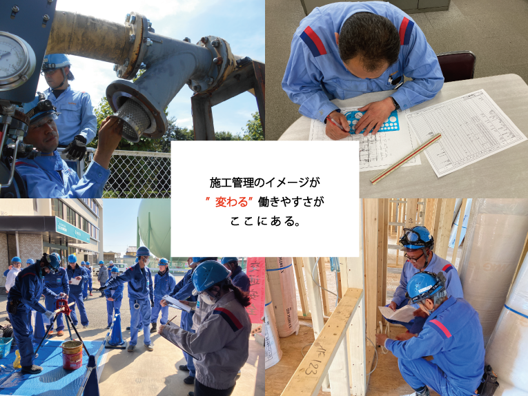 工事の段取りや現場管理を行う施工管理、実際に工事を行う施工作業員、図面作成や設計を担当する設計士など、それぞれの専門分野で協力しながら仕事を進めています。